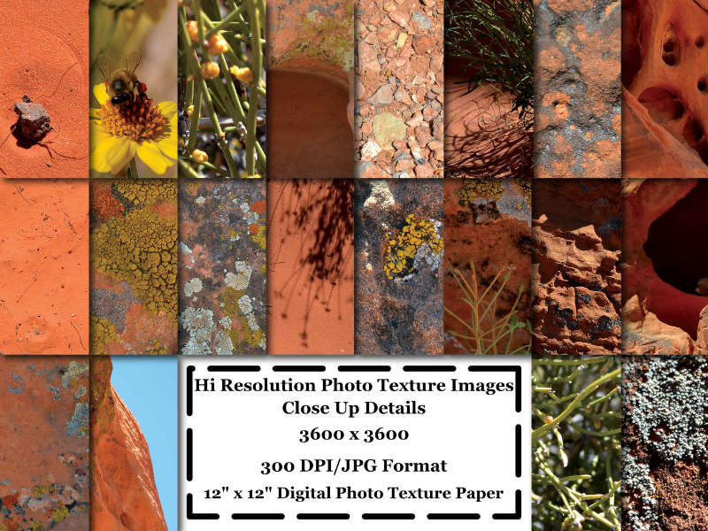 This Desert Red Stone Photo Texture Backgrounds Digital Papers Set that I made contains 20 different super close up high resolution detailed photos, made into a 12” x 12” digital paper size in a JPG format. These are large high resolution files that can be used in countless ways. For either Personal or Commercial Use.
