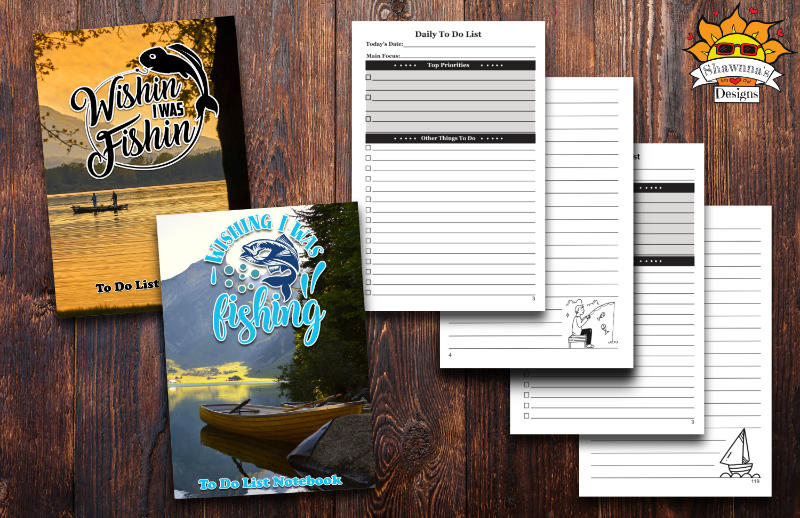 Fishing Themed To Do List Notebooks Features: Beautiful fishing photos on the cover Todays Date line Main Focus line Top Priorities section – with 3 chunky task lines for the most important tasks Other Things To Do section – with 15 task lines Checkboxes to mark your tasks complete Cute funny Fishing saying on theContinue reading “New Release – Fishing Themed To Do List Notebooks”